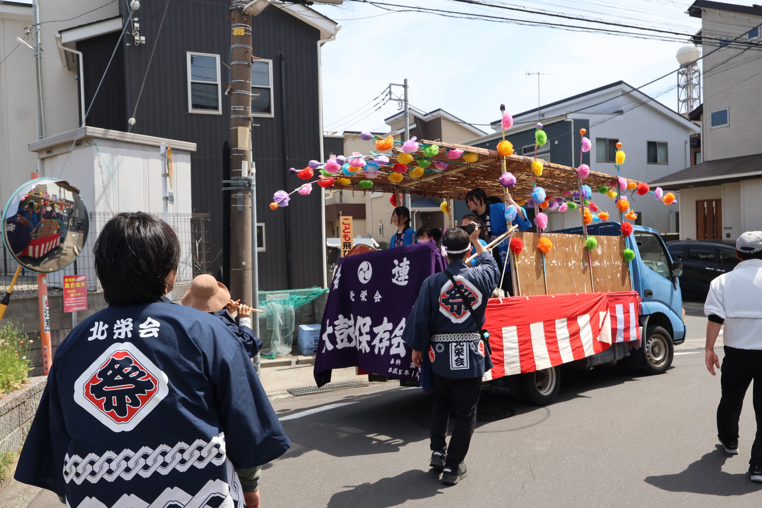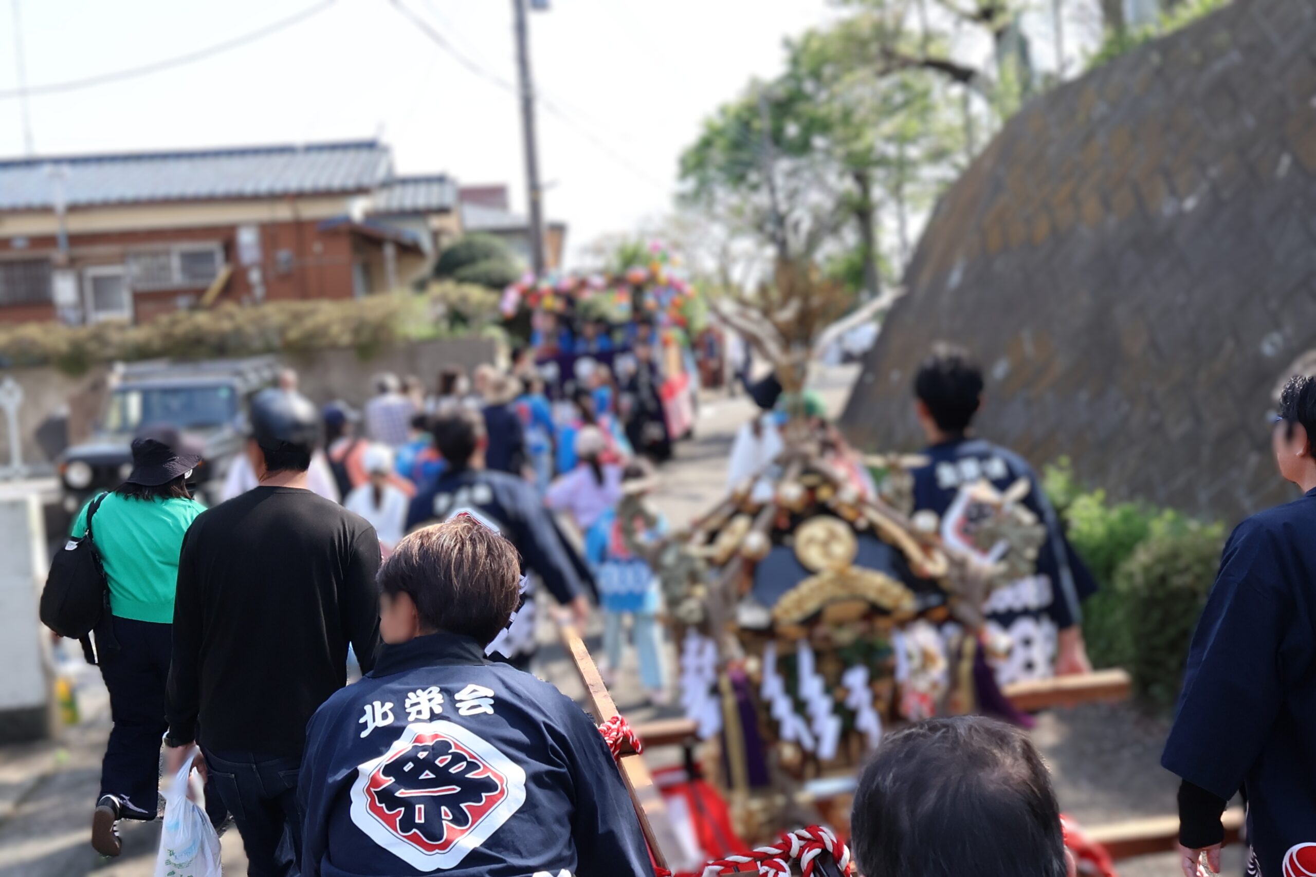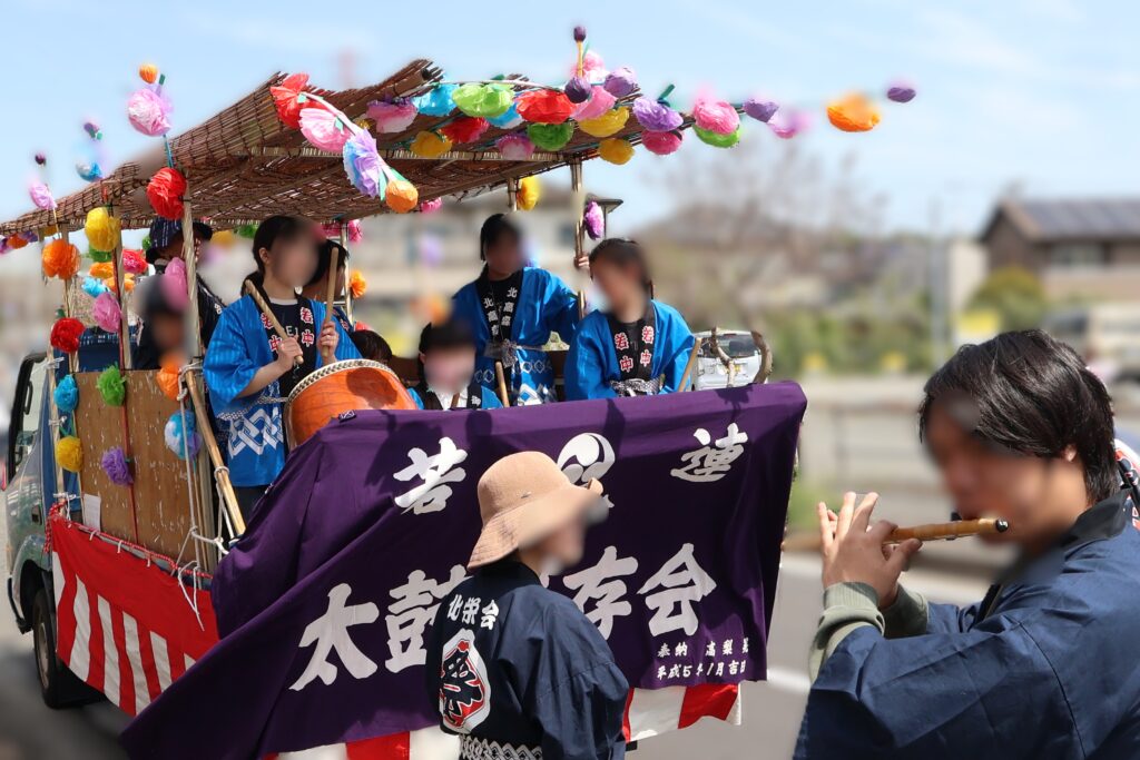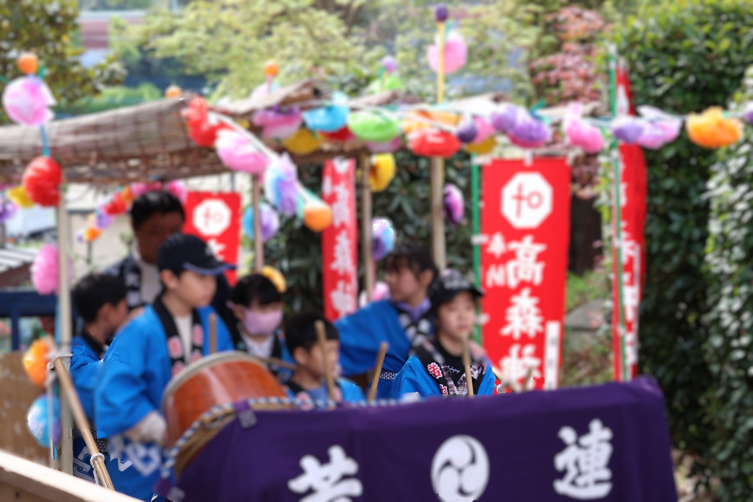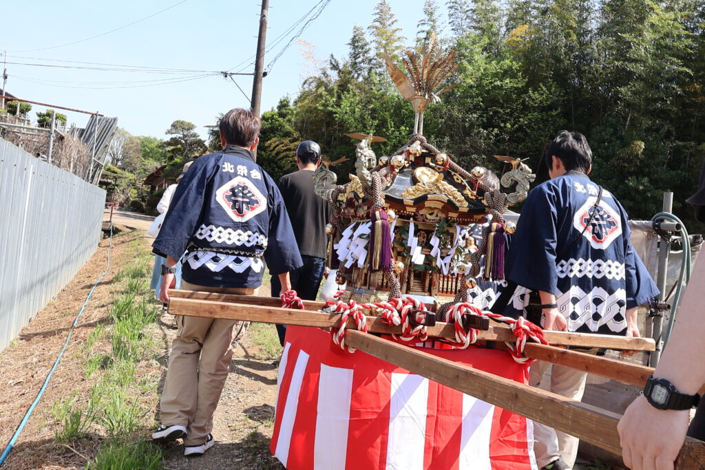 子供たちの太鼓や大人の笛太鼓とともに、今回は子供たちが神輿が曳いて北高森地区を渡御しました。最初に祭り囃子が現れ、次に力を合わせて綱を曳く子供たちが続き、次に保護者たちが御輿を乗せたリヤカーを押して、進んでいく様は実に壮観です。音響効果抜群の太鼓は、北栄会太鼓部がご指導され、練習の成果(練習日は7日間)を発揮し地域を元気にします。太鼓の音が聞こえてくると家の中から家族が出てきて、声をかけてくれます。おひねり箱を持った子供たちは軽快に動き地域を盛り上げます。一日中素晴らしい音色の笛を演奏してくださった方々お疲れ様でした。