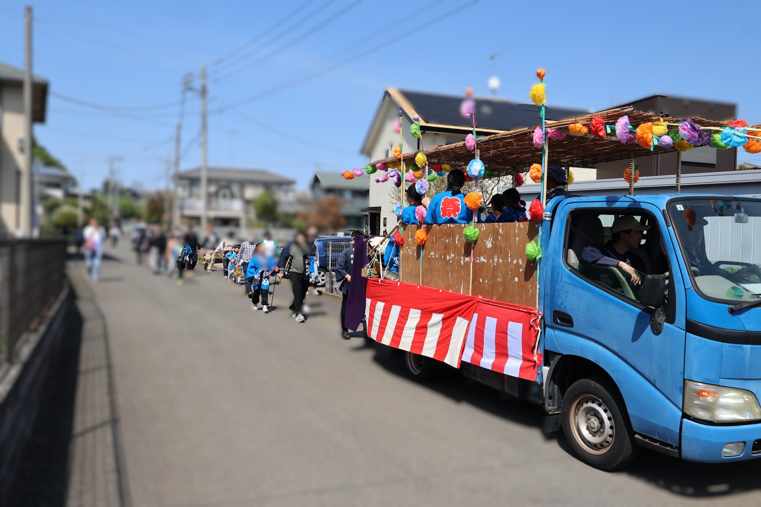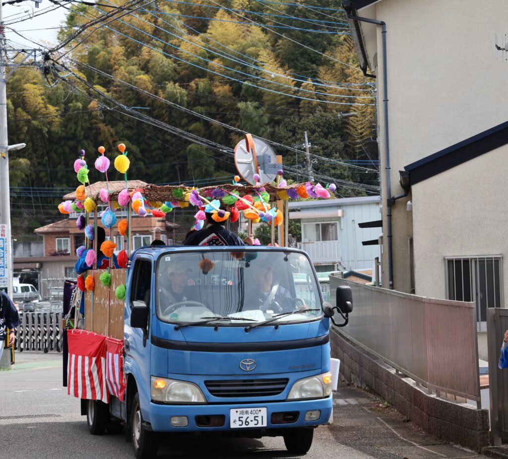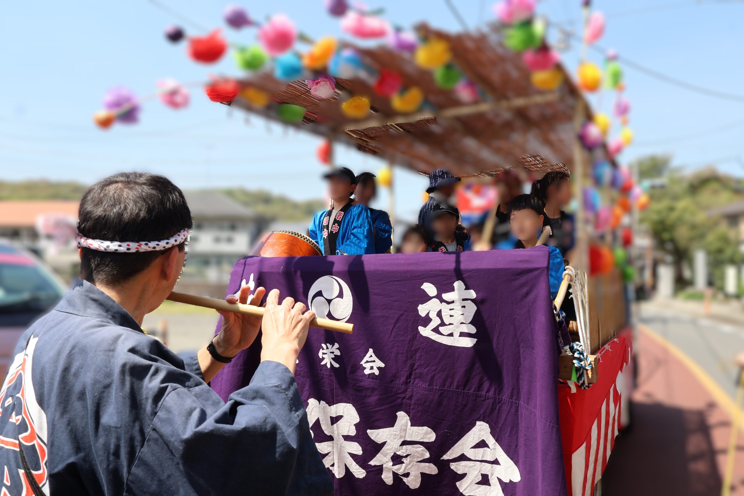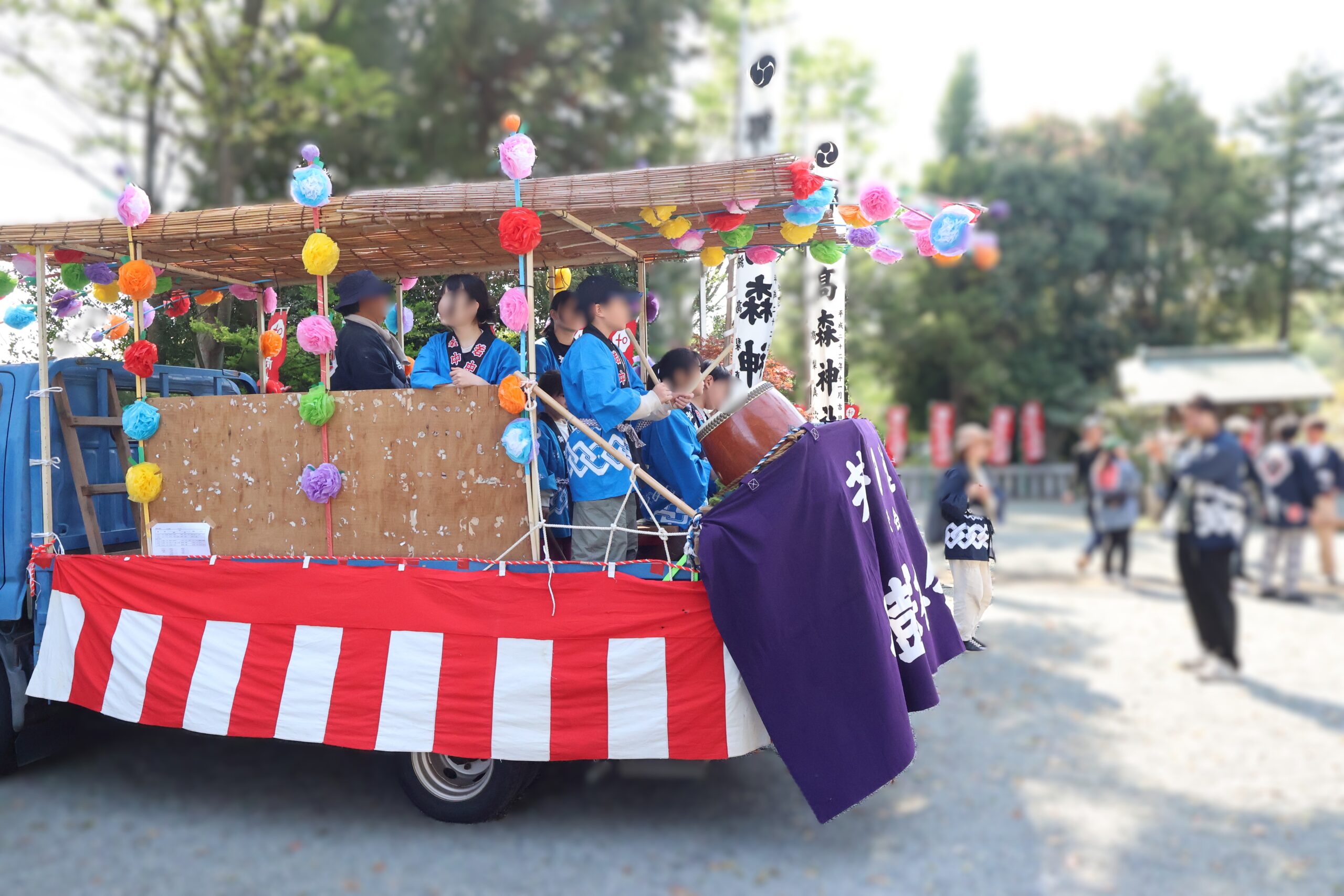 子供たちの太鼓や大人の笛太鼓とともに、今回は子供たちが神輿が曳いて北高森地区を渡御しました。最初に祭り囃子が現れ、次に力を合わせて綱を曳く子供たちが続き、次に保護者たちが御輿を乗せたリヤカーを押して、進んでいく様は実に壮観です。音響効果抜群の太鼓は、北栄会太鼓部がご指導され、練習の成果(練習日は7日間)を発揮し地域を元気にします。太鼓の音が聞こえてくると家の中から家族が出てきて、声をかけてくれます。おひねり箱を持った子供たちは軽快に動き地域を盛り上げます。一日中素晴らしい音色の笛を演奏してくださった方々お疲れ様でした。