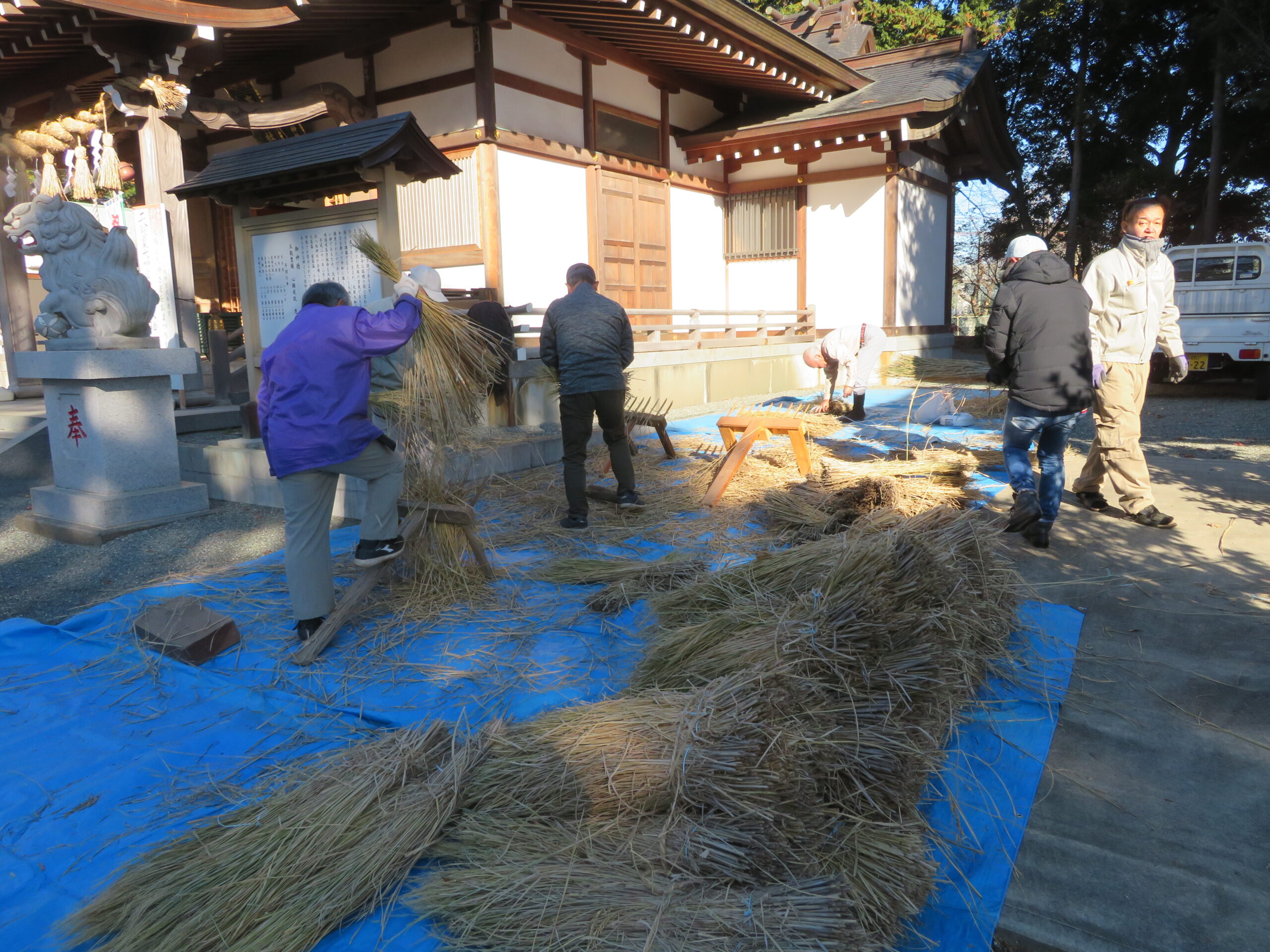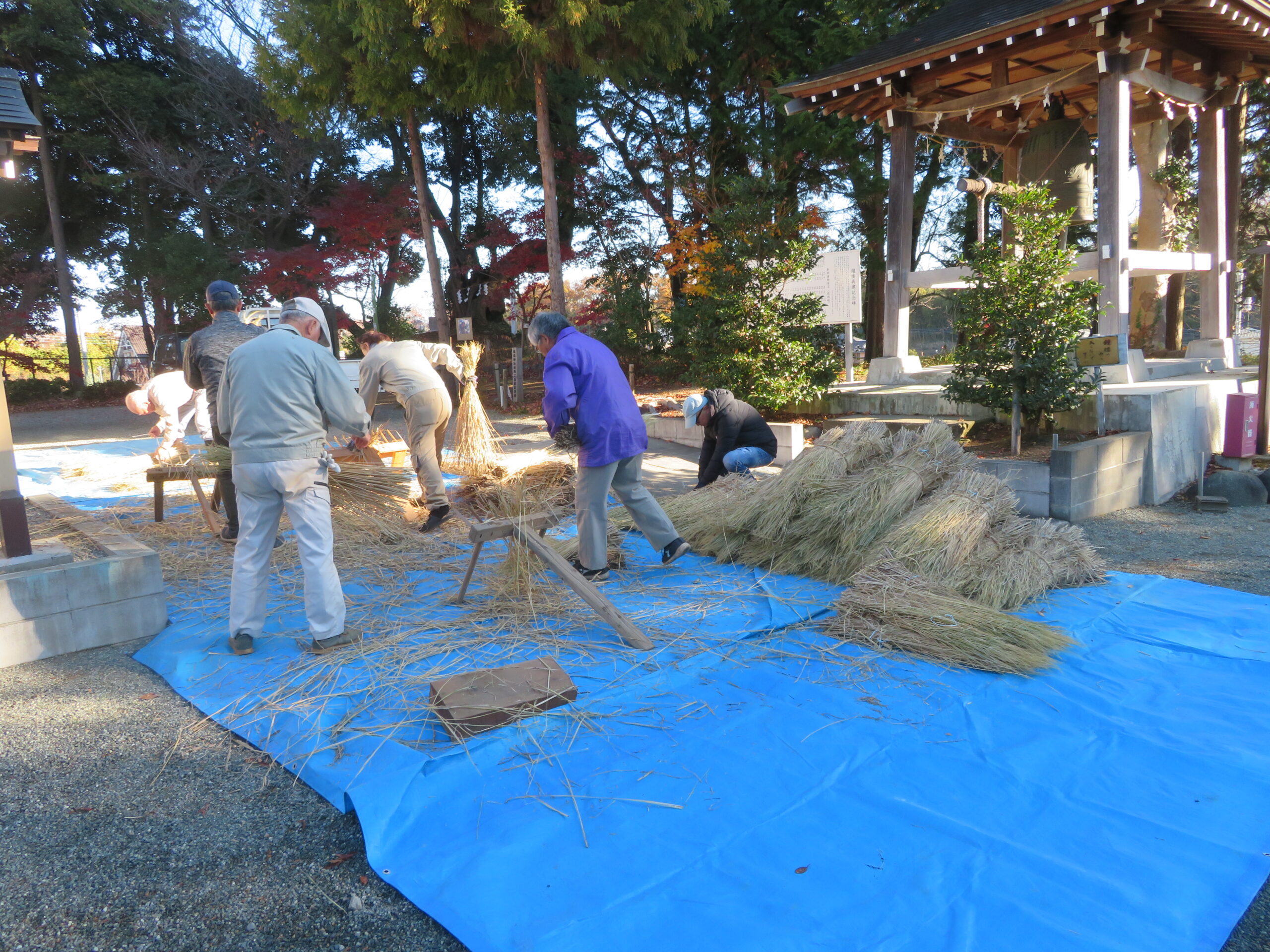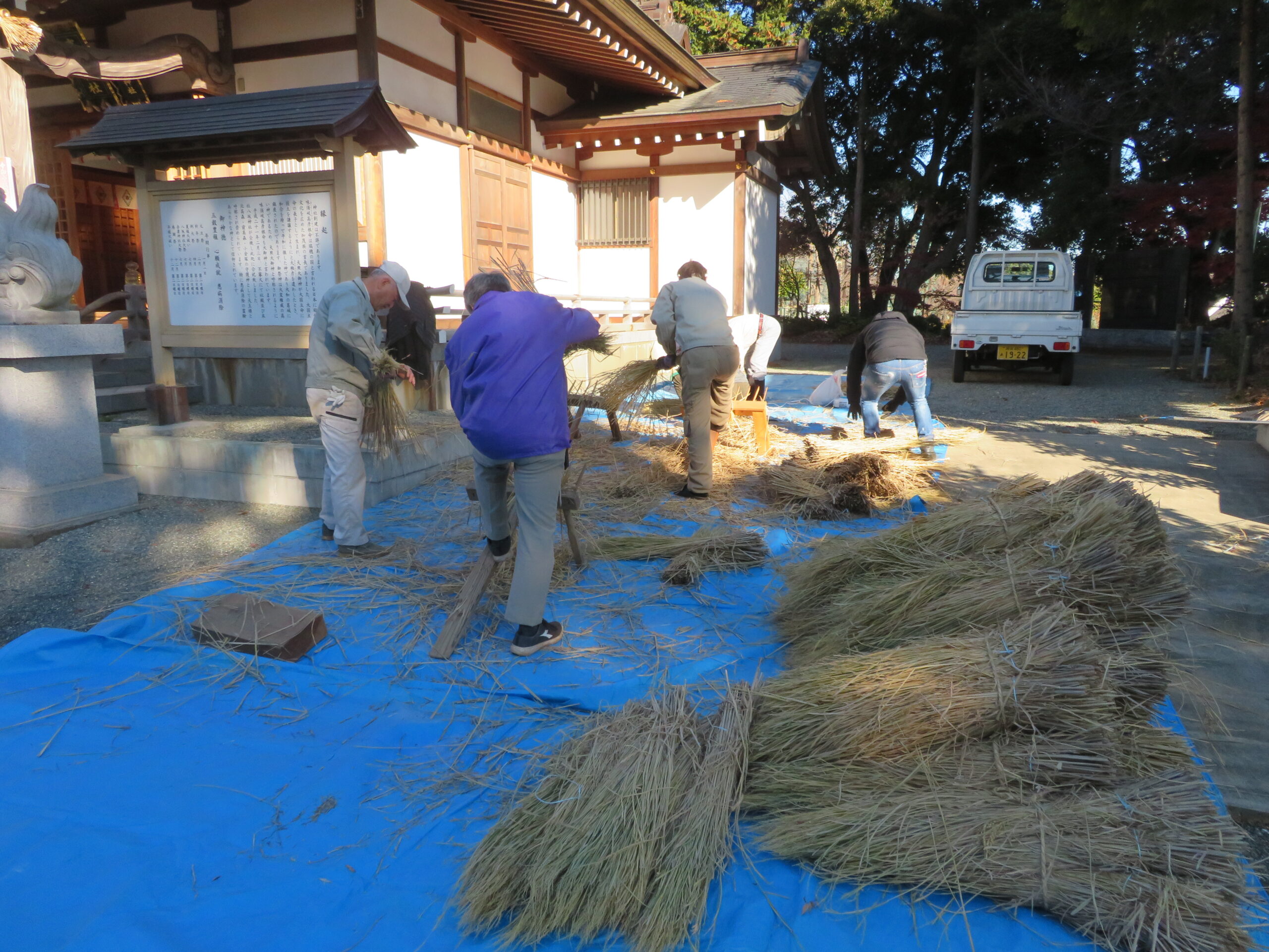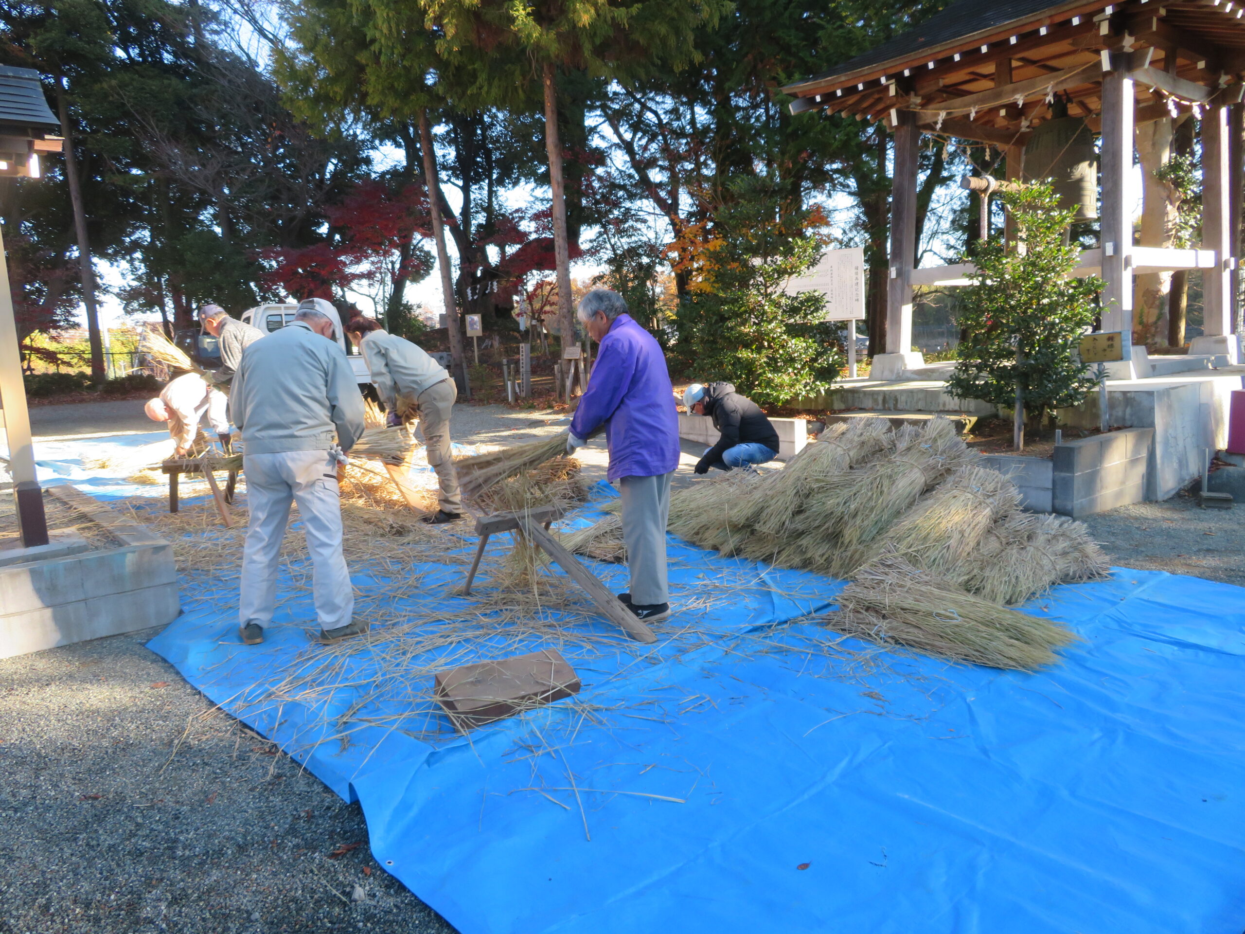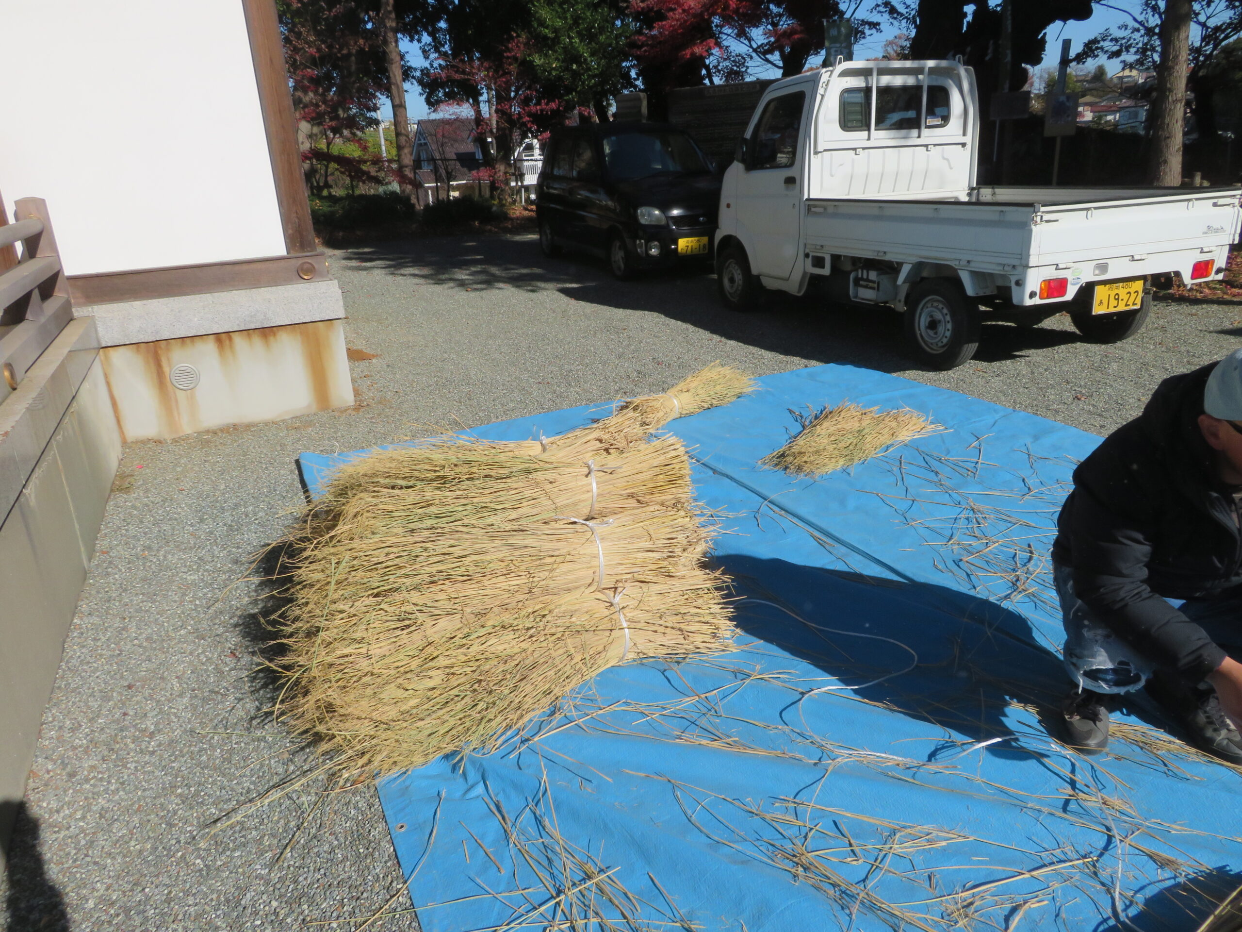 12/7「わらすぐり」を行いました。 2025.12.07 心地よい日差しの下、和気あいあいと作業ができました。きれいにすぐられたわらの束が積まれていき12/14の注連縄づくりの準備が整いました。 役員・有志の皆様。今年もご奉仕ありがとうございます。