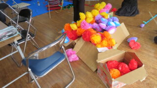 4月5日(日)高森児童館に、神社役員、北栄会、有志の皆様20人以上の参加をいただき、和やかな雰囲気の中で、山車等の装飾に使う花飾りを作りました。裂いた竹にテープを巻き、その竹に花紙をふっくら広げてくっつけます。経験を積まれた方々も多く、上手...